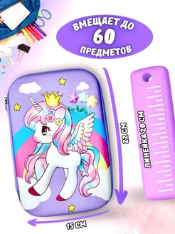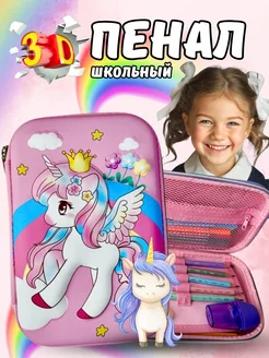 Пенал школьный большой 3D с единорогом