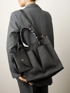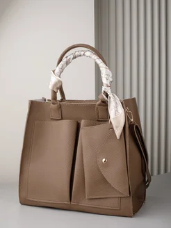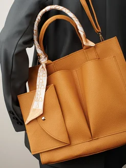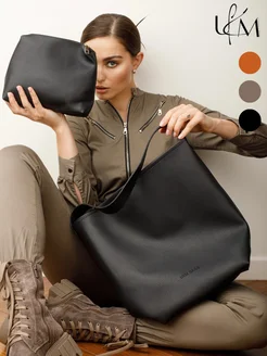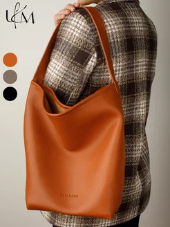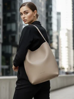 Сумка бежевая тоут мешок кожаная большая на плечо
