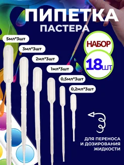 Набор пипетки пастера 18 шт 0,2 мл 0,5 мл 1 мл 2 мл 3 мл 5мл