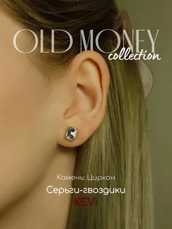 Серьги гвоздики золотистые с камнем циркон