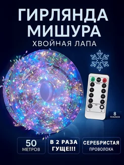 Гирлянда роса мишура Хвойная лапа 50 м с пультом