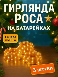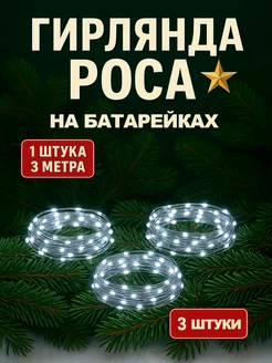Гирлянда роса на батарейках 3 метра комплект 3 штуки