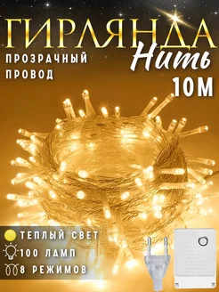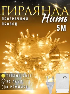 Гирлянда уличная бахрома 20 теплый белый (желтый)