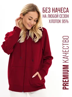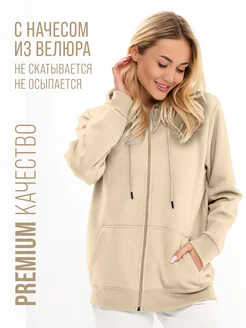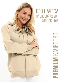 Худи на молнии с капюшоном без начеса оверсайз