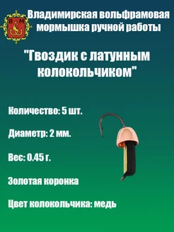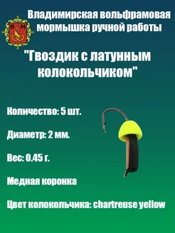 Мормышка вольфрамовая "Гвоздик с латунным колокольчиком"
