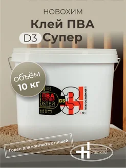 Клей ПВА D3 Супер 10 кг Новохим водостойкий столярный