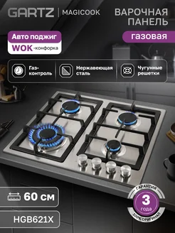 Варочная панель газовая, встраиваемая, HGB621X, 60см