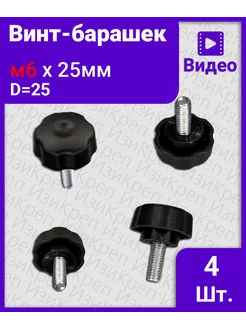 Винт - барашек, болт м6х25мм, ручка-фиксатор 25 мм - 4 шт