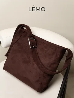 Сумка большая замшевая темно-коричневая