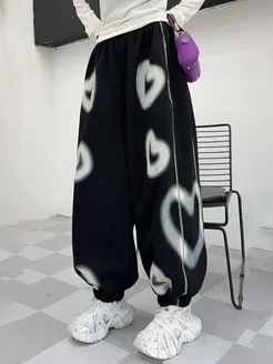 Брюки джоггеры оверсайз с низкой посадкой широкие с принтом