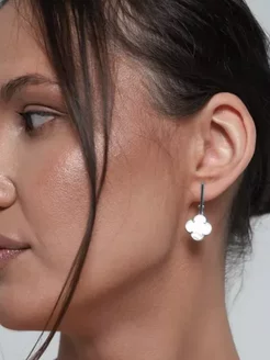 6074 серьги с английским замком перламутр клевер премиум NEW