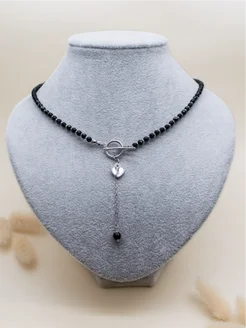 6497 Колье из агата с подвеской сердце с ключиком топовое А+