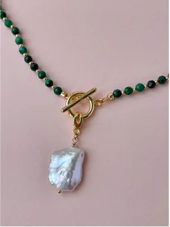 6005 Топ малахитовое колье с натуральным барочным жемчугом