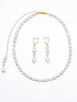 3115 Свадебный комплект из жемчуга колье-сотуар и серьги хит