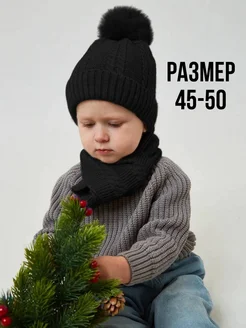 Шапка весенняя вязаная с шарфом детская