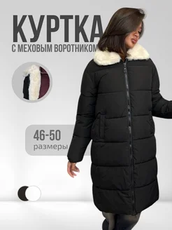 Куртка пальто удлиненная с меховым воротником