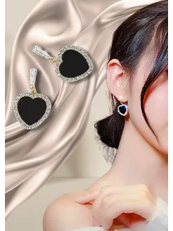 Серьги длинные с сердцем