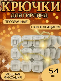 Крючки для гирлянд самоклеящиеся прозрачные, держатели 54шт