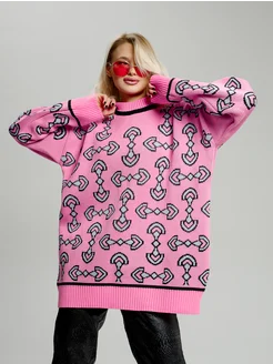 Свитер оверсайз с принтом удлиненный вязаный y2k