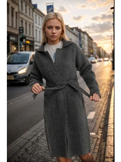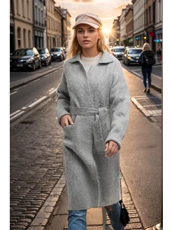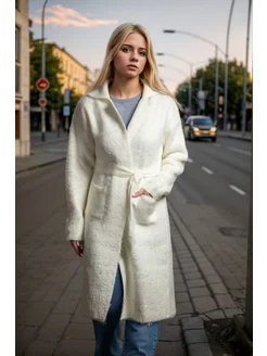 Кардиган удлиненный пушистый с поясом