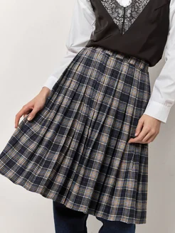 Юбка миди плиссированная в клетку теплая на резинке