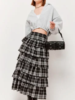 Юбка ярусная в клетку с воланами миди
