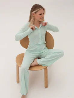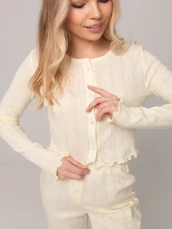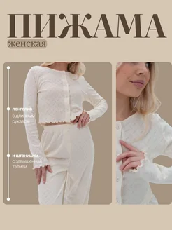 Пижама со штанами и лонгсливом из ажурного хлопка
