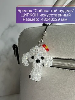 Брелок "Собака той-пудель" белыйиз циркона искусственного
