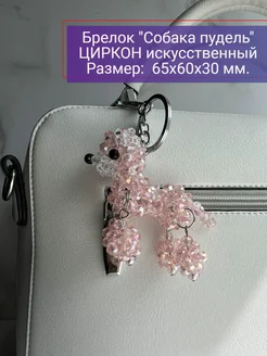 Брелок "Собака пудель" розовый из циркона искусственного