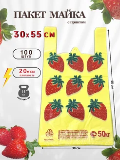 Пакет майка "Клубника" 30х55 см 100 штук фасовочные