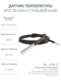 Датчик температуры NTC 10K гильза 6x50 2х-проводный 1 м