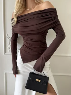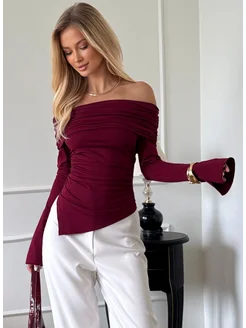 Лонгслив женский облегающий с открытыми спущенными плечами