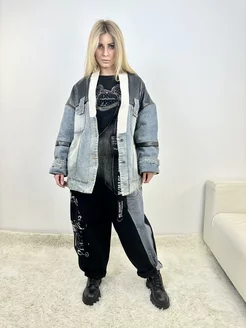 Куртка весна-лето джинсово-трикотажная с капюшоном