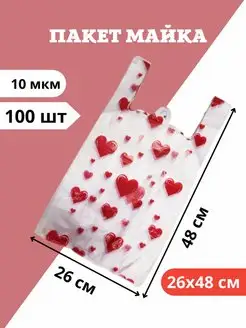 Пакет майка полиэтиленовый 26х48 см, 100 шт Сердечки