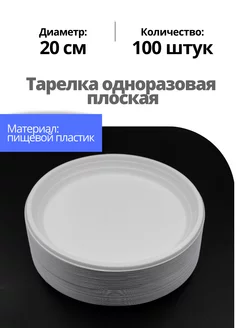 Тарелки одноразовые пластиковые 100 штук 20,5 см