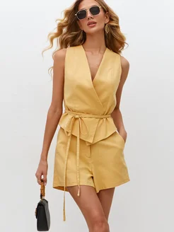 Летний костюм с шортами из льна