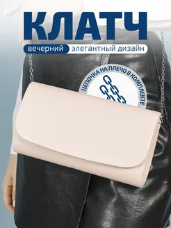 Клатч вечерний бежевый с цепочкой на плечо свадебный