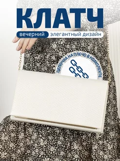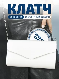 Клатч вечерний белый с цепочкой на плечо свадебный