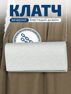 Клатч вечерний серебристый с цепочкой на плечо блестящий