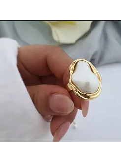 Кольцо с жемчугом регулируемое вечернее бижутерия
