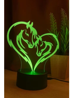 3D Ночник "Сердце из Лошадей" - Подарок на 2026 Год Лошади