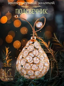 Золотой подсвечник Яблоко декоративный с кристаллами