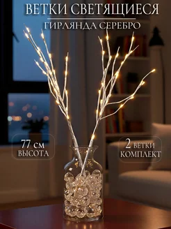Гирлянда Серебряная ветка 2 шт высокая 77см светодиодная