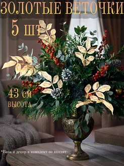 Золотые ветки для декора в вазу на елку блестящие 5шт