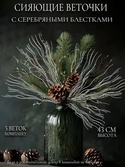 Ветки сверкающие для украшения елки в вазу 5шт серебряные