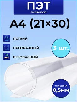 Лист ПЭТ прозрачный А4 (21х30 см), 3 шт