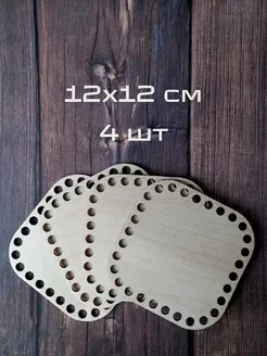 Деревянные квадратные донышки для вязания корзин 12 см 4 шт