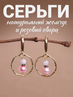 Серьги с натуральным жемчугом и кварцем