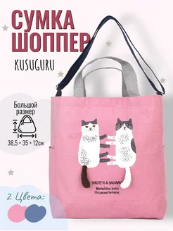 Мини сумка тоут с кошкой Матильдой текстильный шоппер