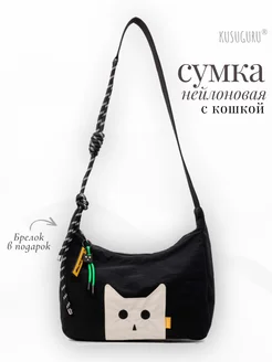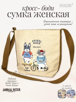 Кросс-боди с нашивкой котом и бульдогом холщовая